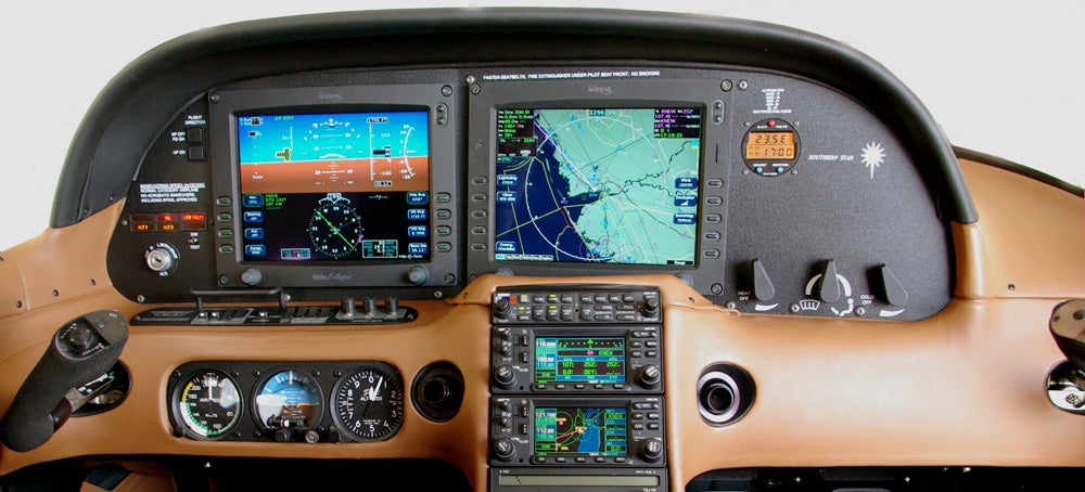 The first flat-panel avionics package in a Part 23 light airplane was the Avidyne Entegra system in the Cirrus SR22 (and the SR20, for that point). The system made use of dual Garmin GNS 430 navigators, an S-Tec 55 autopilot, and analog backup flight instruments in a bolster panel.