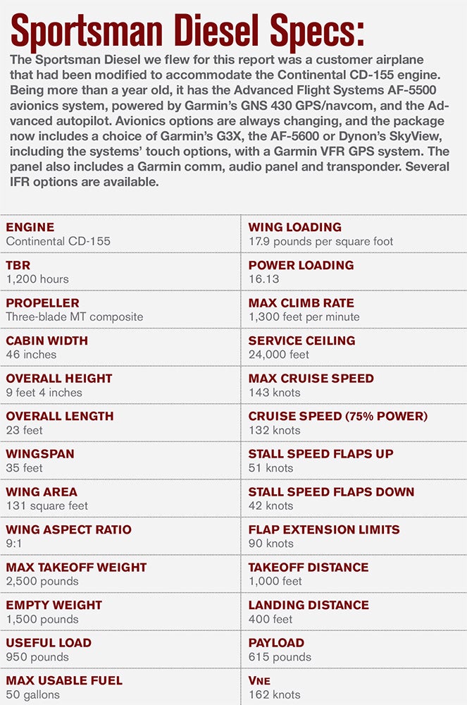 One homebuilding enthusiast who felt that the benefits of a diesel outweighed the initial cost was Kurt Goodfellow, who worked with Glasair to become the first customer with a diesel-powered Sportsman.