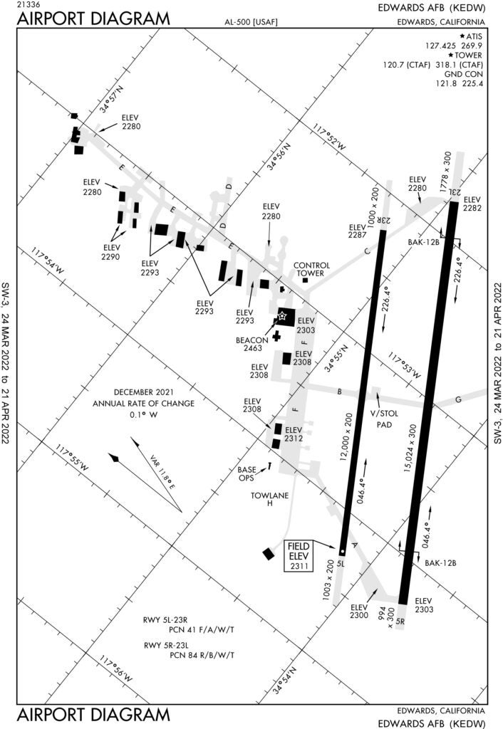 Fun fact: The main concrete runway at Edwards is located next to Rogers Dry Lake. The 15,024-foot length of the runway with the 9,000 foot lakebed overrun “gives pilots with an inflight emergency one of the longest and safest runways in the world,” according to NASA.