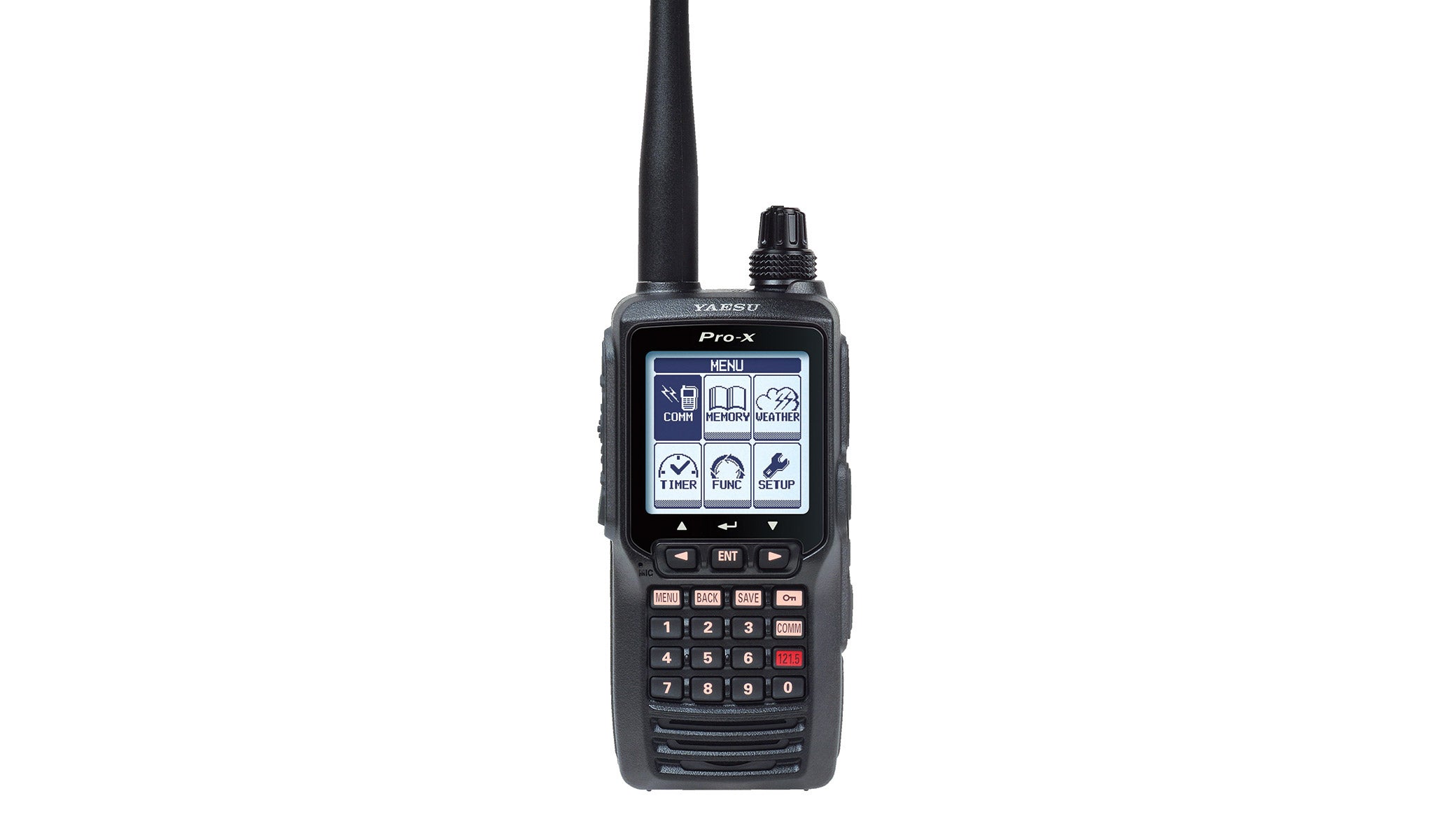 Chances are you’ve never seen a handheld navcom radio quite like this. The Yaesu FTA-550 Pro-X radio can transmit and receive on the full aviation-frequency band between 108.000 MHz and 136.975 MHz, with dedicated scanning for comm and nav frequencies from an easy-to-read menu page on its LCD screen.
