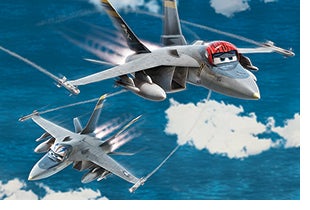 Other characters that adults might appreciate are Bravo and Echo, two F-18-like jets inspired by Top Gun‘s Iceman and Goose. The jet fighters wear the same color helmets as the Top Gun characters. Val Kilmer is behind the voice of Bravo, and Anthony Edwards acts as Echo.