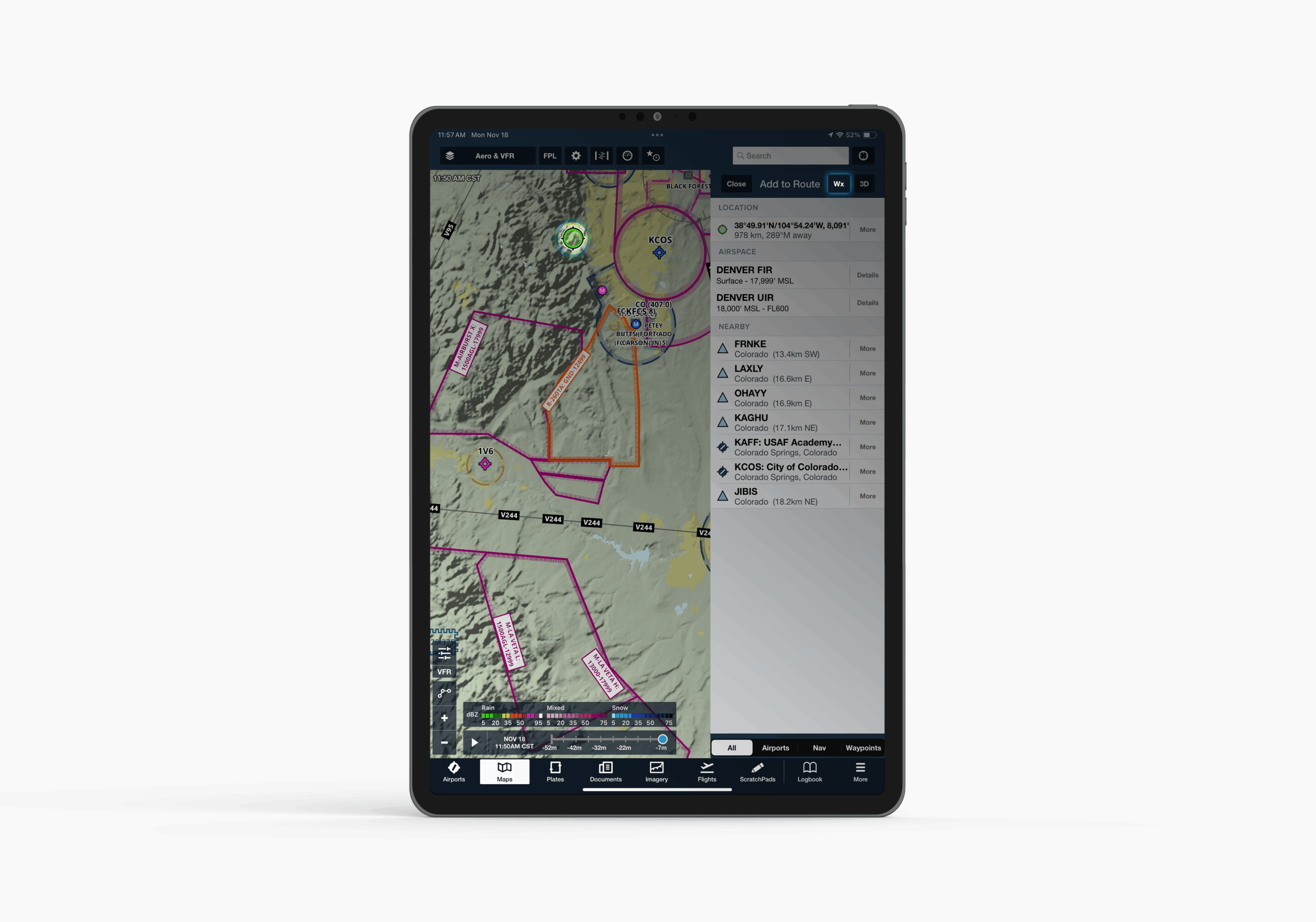 Color-coded pins on the map correspond with the same-colored circle by the airport identifier on the widget to help you quickly reference the location of the data displayed. Unique to Garmin Pilot, the NavTrack and widgets help you to build a better picture of what you may encounter, plan for weather, and possibly even select better routing to reach your destination.