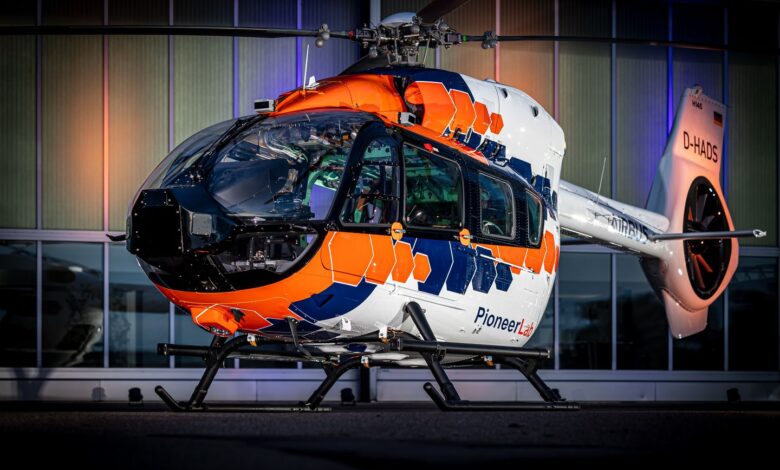 Specially equipped twin-engine test helicopter seeks to save fuel and use more recyclables.