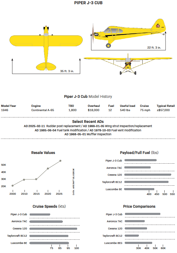 ![Many J-3 Cubs have been boosted with 85 hp engines and other modifications from bush-style wheels to full electrical systems and modern avionics.. [Credit: Leonardo Correa Luna]](https://www.flyingmag.com/wp-content/uploads/sites/2/2026/01/FLY0126_3.0-Used-Aircraft-Guide-2.jpeg)