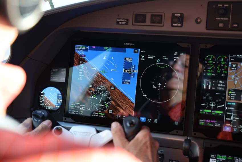 A major part of the avionics suite is the Garmin GWX 8000 StormOptix weather radar. Using a new 12-inch dish on the right wingtip (which also helps counteract P-factor on takeoff), it is fully automatic—the crew only need to select the range. It has 3D volumetric scanning and automatically suppresses ground clutter, warns of potential areas of radar attenuation, and boasts hail and lightning prediction. For takeoff and landing, it has predictive wind shear.